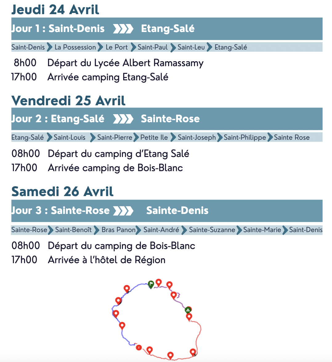 Ce tour de l'île à vélo constitue une expérience concrète de sécurité routière, où les participants apprennent à partager la route et respecter les règles. La journée d’éducation à la sécurité routière du lycée, constitue un autre temps fort.
