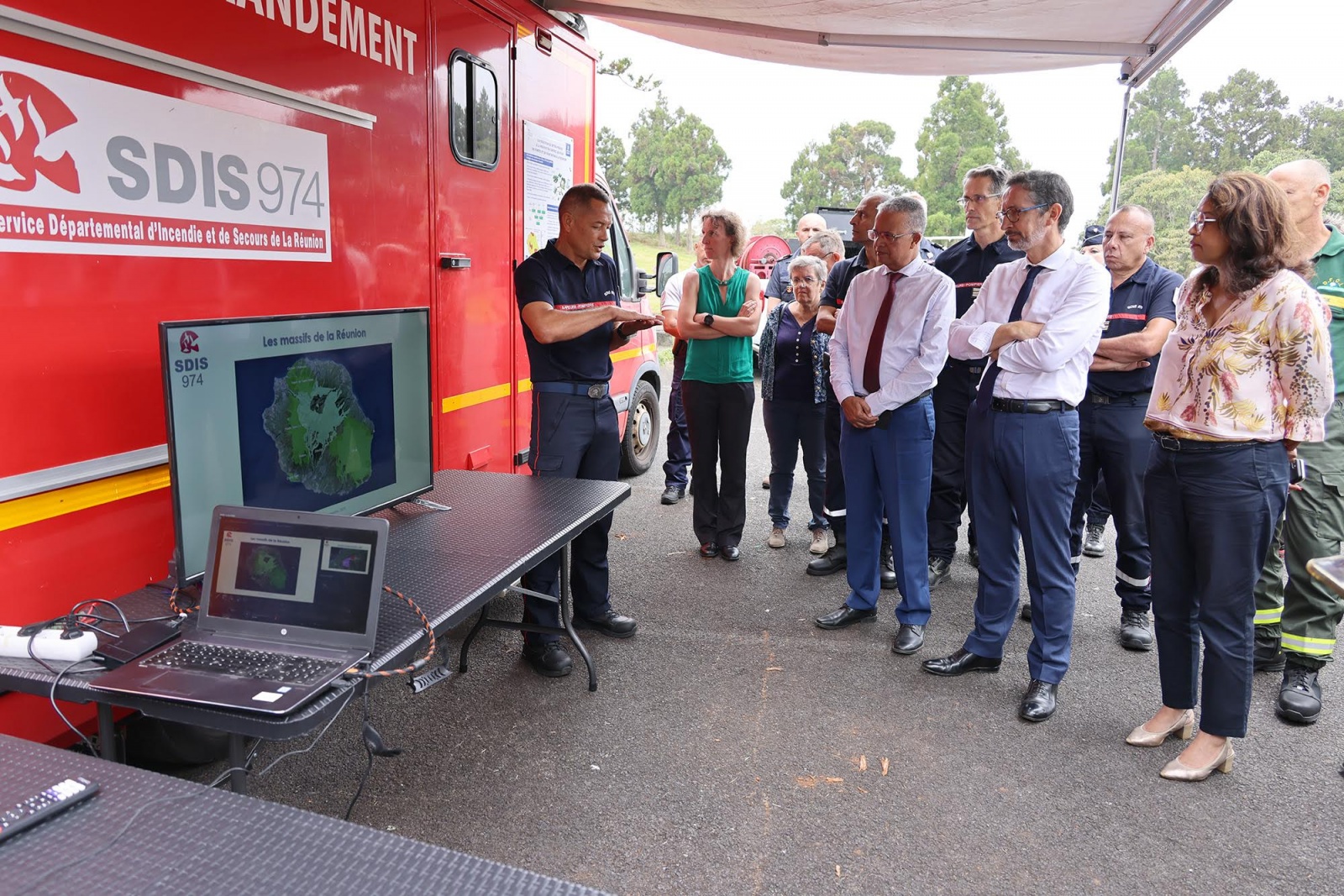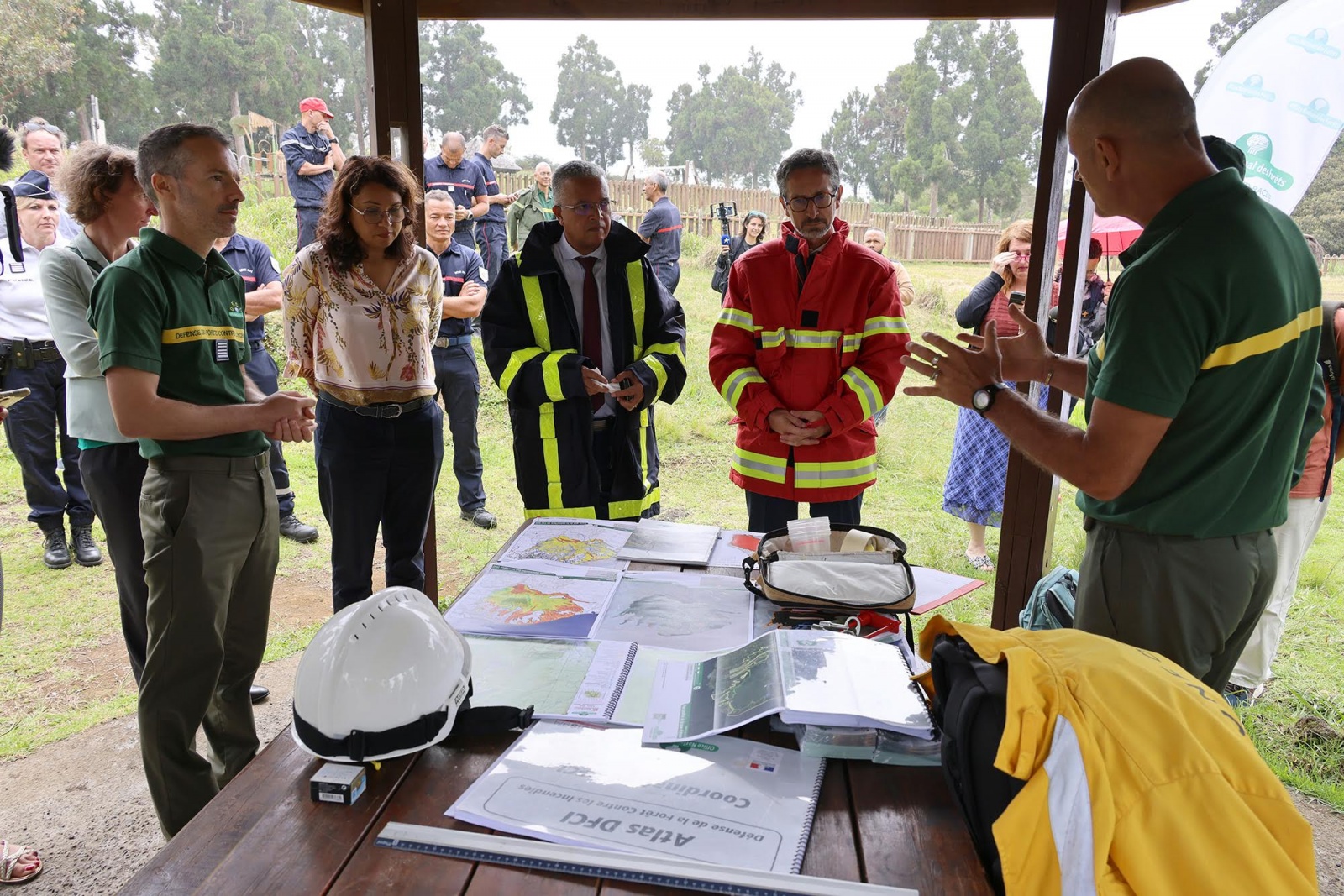 Cyrille Melchior, Président du Conseil départemental, était au côté du Préfet Jérôme Filippini, mardi 26 septembre, pour lancer la campagne annuelle de sensibilisation au risque feux de forêt. "Au Brûlé (Saint-Denis), le Service départemental d’incendie et de secours (Sdis) a ainsi pu présenter la stratégie mise en œuvre pour prévenir ce risque" indique le Département dans le communiqué que nous publions ci-dessous (Photo : Communication du conseil départemental)