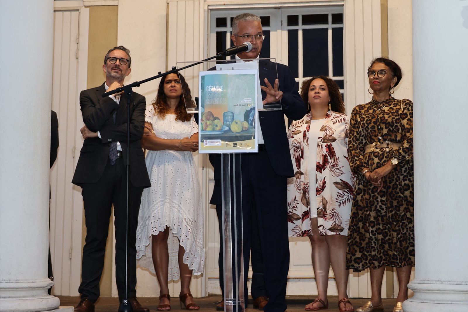 En présence du Préfet Jérôme Filippini, de Béatrice Sigismeau vice-Présidente du Département déléguée à la Culture, du vice-Président Gilles Hubert et des conseillères départementales Adèle Odon et Isabelle Erudel, le Président du Département Cyrille Melchior a précisé que : "Le Musée Léon-Dierx est le seul musée de l’Outre-mer à conserver une collection impressionniste grâce à la précieuse donation de Lucien Vollard, frère du célèbre marchand d’art Ambroise Vollard. Ce Réunionnais installé à Paris, avec une vision avant-gardiste, a révélé́ Cézanne, Renoir, Morisot... Les 2 toiles de Cézanne prêtées par le Musée d’Orsay sont aujourd’hui mises en dialogue avec une soixantaine d’œuvres issues de la collection de l’exposition "Les Modernes la peinture à La Réunion de 1925 à 1946".