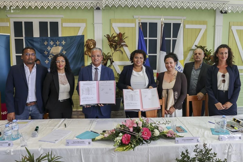 "Nous restons dans une dynamique de co-construction des projets soutenus et financés par le Département, cela en adéquation, le plus justement possible, avec les projets de la municipalité et les besoins de la population" a déclaré le Président Cyrille Melchior, entouré de la maire de Saint-Louis Juliana M’Doihoma et des vice-présidentes du Département, Flora Augustine-Etcheverry et Camille Clain ainsi que des conseillers départementaux Jean-François Payet et Pascal Mangué.