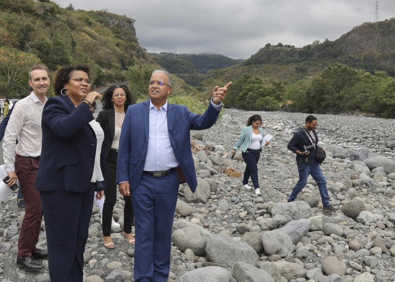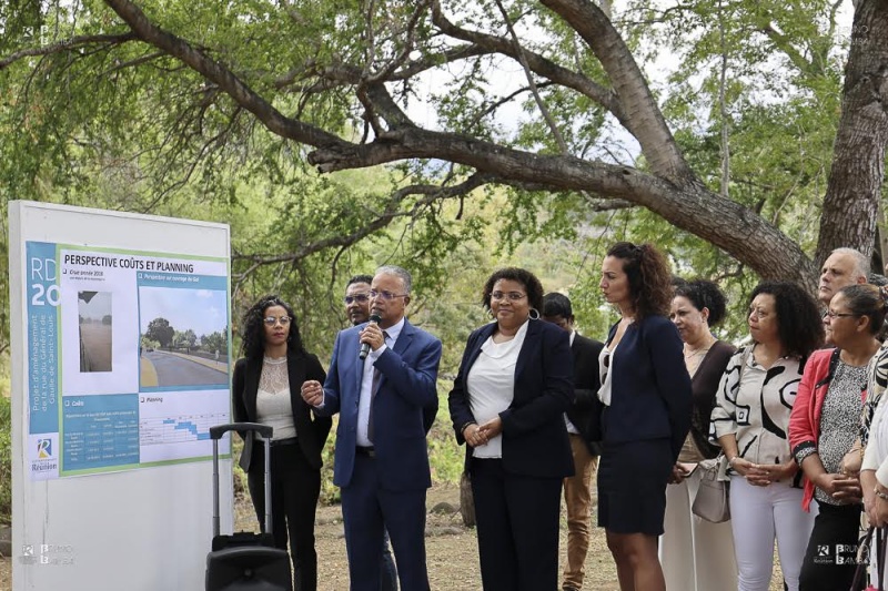 Le projet de franchissement au niveau du Ouaki a également été présenté sur site. La création d’un ouvrage mesurant entre 400 et 500m de long et situé à 90m du sol, est envisagée pour éviter le passage dans le lit de la rivière, sur des radiers souvent submergés et emportés, en cas de fortes pluies. Les précisions de Cyrille Melchior : " Ce pont sera réalisé avec le soutien du Département, en partenariat avec la Commune de Saint-Louis pour que les habitants de La Rivière et de Saint-Pierre n’aient plus à subir ces problèmes de radiers. Nous sommes en phase d’études et notre objectif est que les travaux (30M€) débutent d’ici 3 ans ".