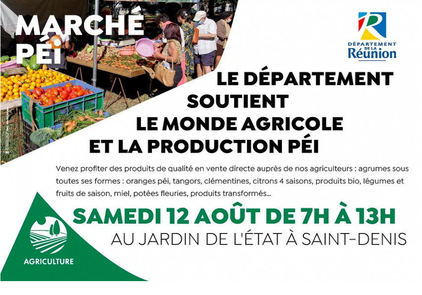 Le Département vous informe du retour du marché péi au Jardin de l’État à Saint-Denis. Les producteurs et agriculteurs vous donnent rendez-vous ce samedi 13 juillet 2023 de 7h à 13h (Photo: www.imaz.press.com)