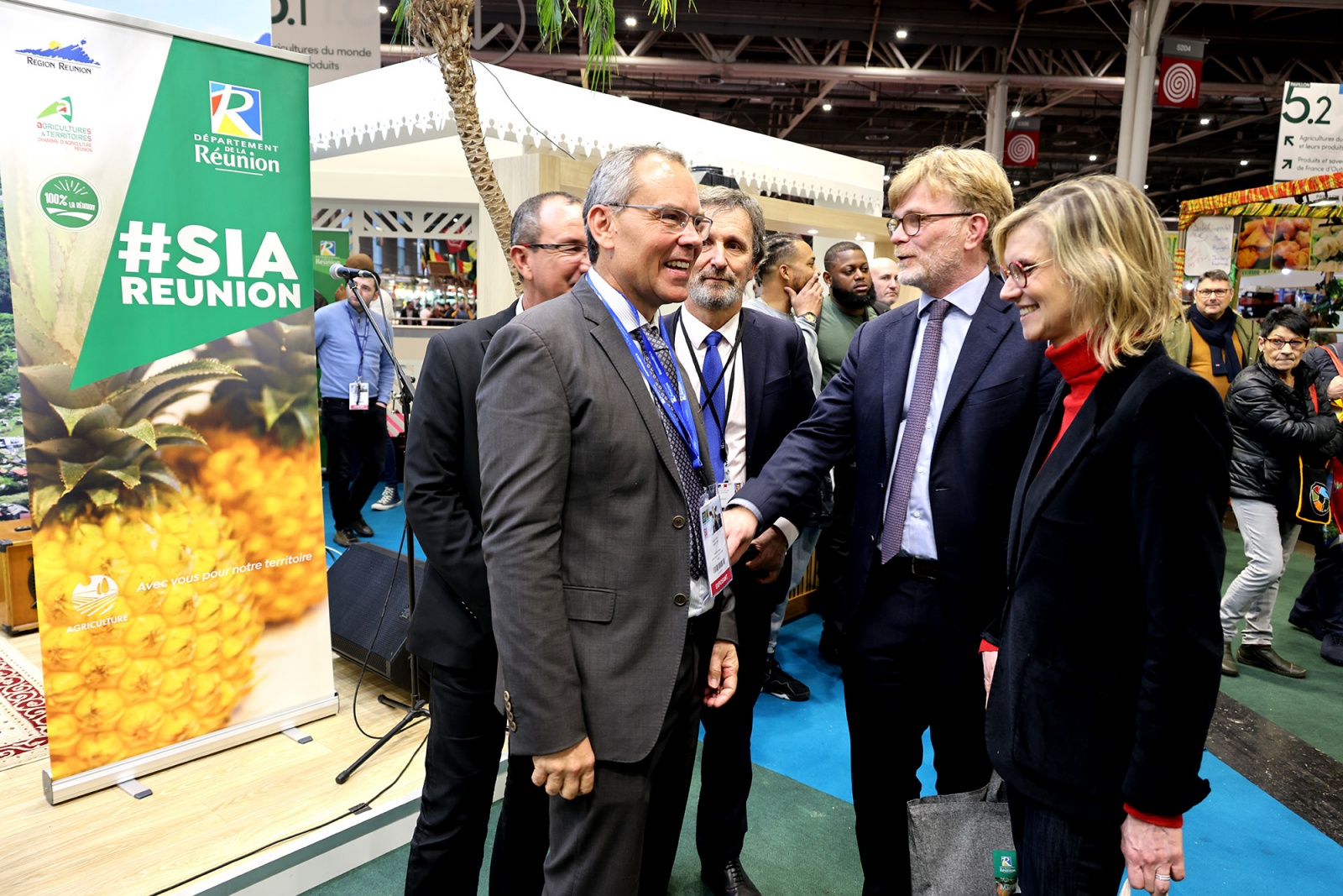 Marc Fesneau, ministre de l’Agriculture, et Agnès Pannier-Runacher, sa ministre déléguée, ont visité le "Village Réunion" du Salon international de l’agriculture (SIA) le jeudi 29 février 2024, où ils ont été accueillis par Serge Hoareau, vice-Président du Conseil départemental délégué aux Affaires agricoles.