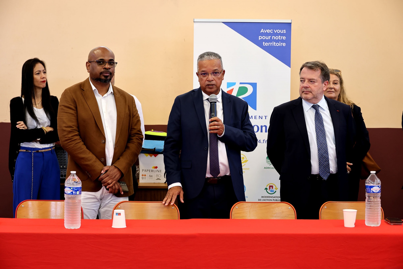 "Après avoir visité une classe, en compagnie du Recteur et du Conseiller départemental René Sotaca, élu siégeant au Conseil d’administration du collège Claude Mahoudeaux, le Président Cyrille Melchior n’a pas manqué de rencontrer sur leur lieu de travail, les agents techniques territoriaux (ATTEE) du Département, avec qui il a eu quelques échanges cordiaux, en toute convivialité. Pour le Département, l'année scolaire 2024/2025 est placée sous le signe du travail en collectif, de la solidarité et de la réussite" conclut le Département.