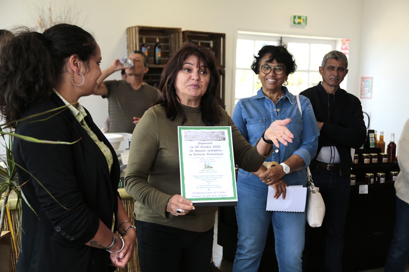 Ensuite, les élus ont été accueillis dans la boutique des producteurs où l’on trouve divers produits transformés du terroir : confitures, sirops, gelées, rillettes de poulet, canard, foie gras, escargots, rillettes ou terrines de cochon noir… Sans oublier les légumes, grains, miel, lentilles et vin de Cilaos.