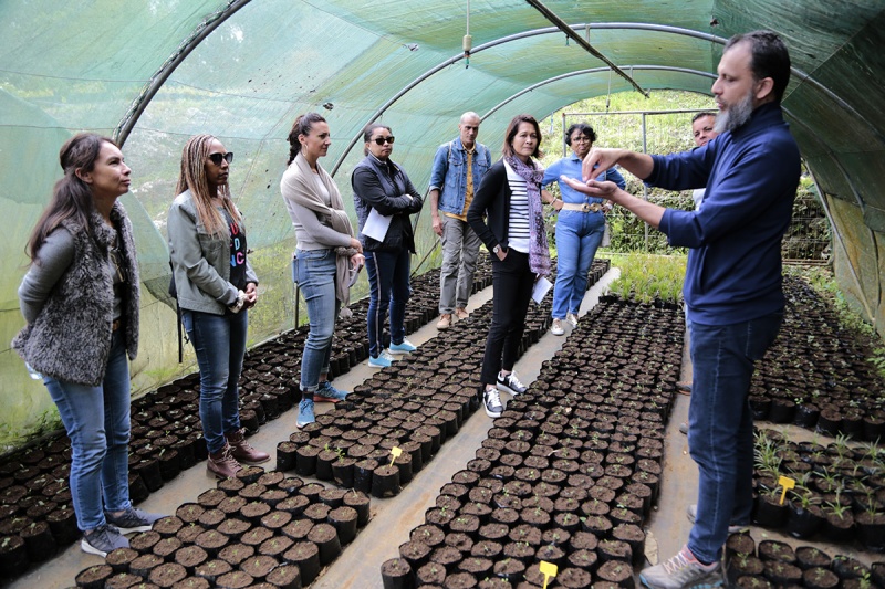 La découverte des travaux de restauration écologique menés par la SPL Edden (Société publique locale, Écologie et Développement Durable des Espaces Naturels) était également au programme de la matinée de travail. En plus de la gestion de la forêt primaire (1,3 hectare) au sein du Domaine Archambeaud, la SPL Edden a mis en place une pépinière produisant des plants d’espèces indigènes et endémiques, qui seront utilisés dans le cadre du Plan 1 Million d’Arbres pour La Réunion (P1MA) mené par le Département.