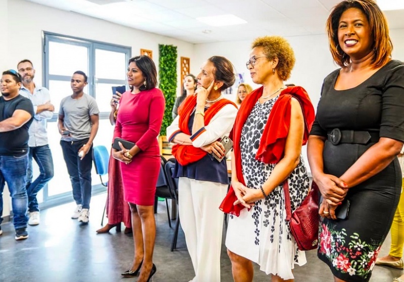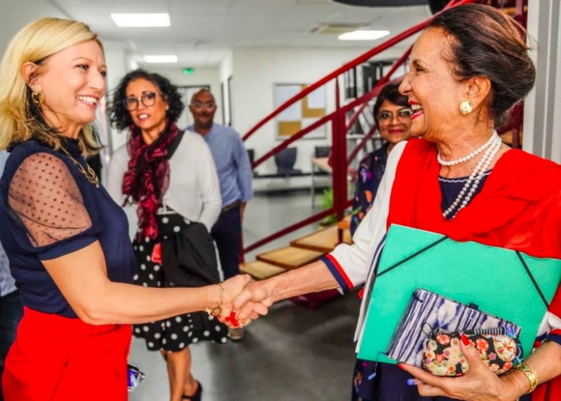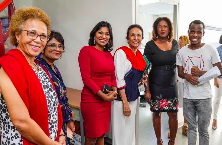 La Présidente de Région, Huguette Bello, accompagnée des vice-présidentes en charge de la lutte contre l'illettrisme, de la formation professionnelle et de l'éducation, Lorraine Nativel, Karine Nabenesa et Céline Sitouze, s'est rendue ce mercredi 24 août 2022 dans les locaux de l'École de la Seconde Chance à Sainte-Marie. (photos : Région)