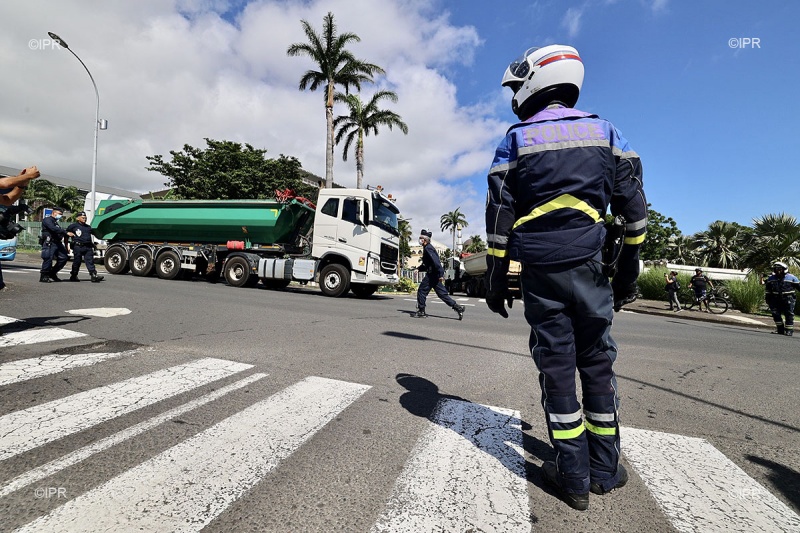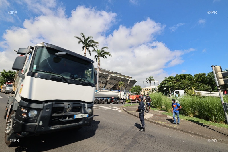 Selon nos informations, les transporteurs évoluent en convoi et se dirigent vers la Route du littoral. Après être passés par le boulevard Lancastel, ils sortent du Barachois et se trouvent actuellement au niveau du pont de la Rivière Saint-Denis.
