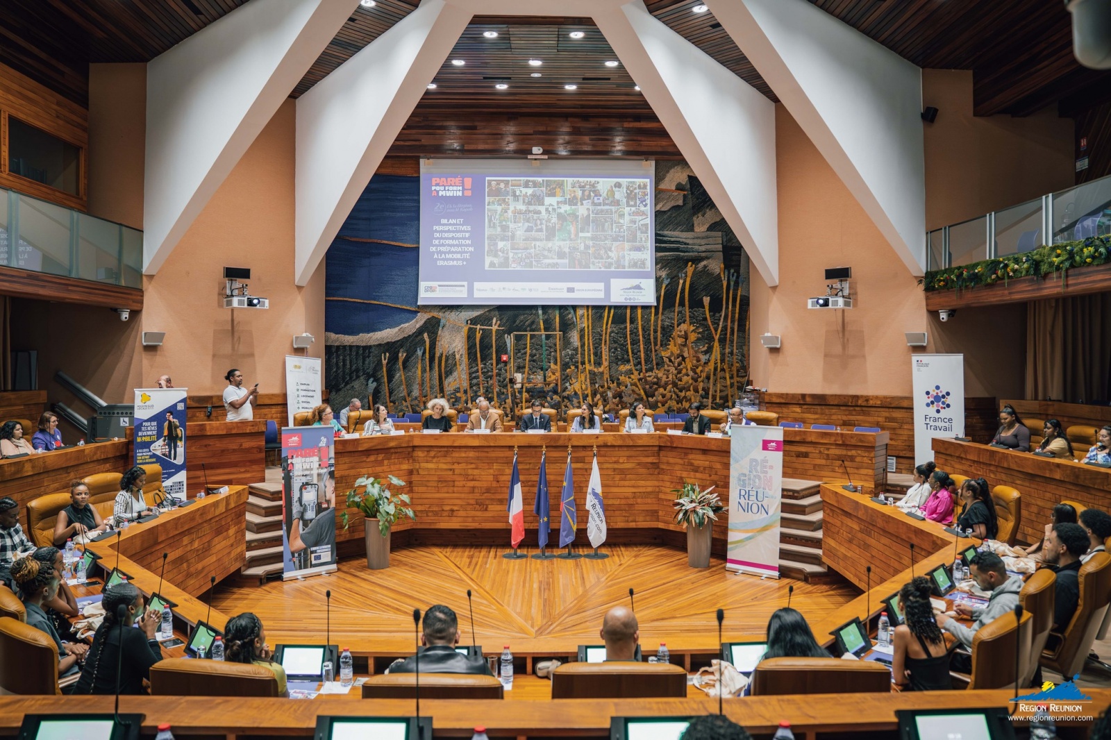 Dans le cadre du mois de la formation professionnelle, la Région a présenté le dispositif Erasmus+ à de jeunes Réunionnais réunis dans l’hémicycle. Ce programme vise à lever le frein de l’éloignement géographique en offrant des stages ou apprentissages à l’étranger. Près de 200 jeunes ont déjà pu se former en Europe, grâce à un soutien régional de plus de 400 000 euros mobilisés en 2023 et 2024. Nous publions le post de la Région ci-dessous. (Photos : conseil régional).