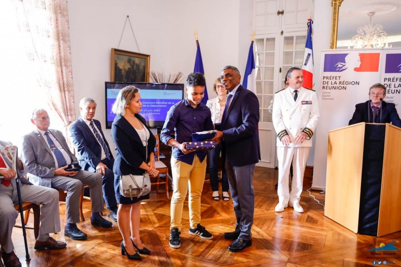 Christian Annette, Conseiller Régional, s'est rendu à la préfecture ce mercredi 15 juin pour la remise des prix du Concours National de la Résistance et de la Déportation aux côtés de Chantal Manès-Bonisseau, rectrice de l'Académie et Jacques Billant, Préfet de La Réunion. Nous publions ci-dessous le communiqué de la Région Réunion. (Photo : Région Réunion)