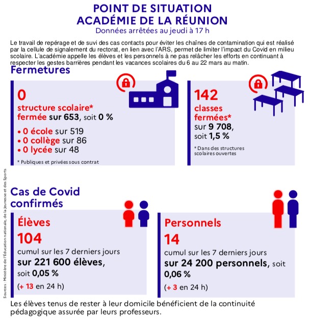 A la veille des vacances scolaires, 142 classes ont fermé dans l'île à cause du Covid-19 ces sept derniers jours. 104 élèves et 14 personnels ont par ailleurs été testés positifs au virus (Photo d'illustration rb/www.ipreunion.com)