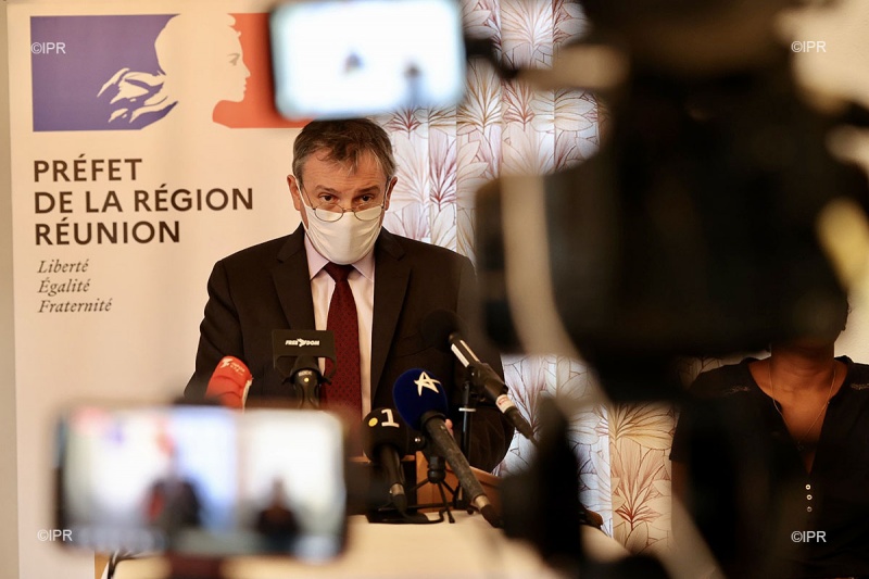 Le préfet Jacques Billant s'exprime à 17 heures ce mercredi 9 juin 2021 sur la situation sanitaire à La Réunion. Cette intervention a lieu à l'issue de sa réunion hebdomadaire avec les maires de l'île. Le préfet a annoncé sous conditions la réouverture à partir du 19 juin des restaurants, des salles polyvalentes, des salles de sport et de jeux, et la reprise des sports collectifs et de combat. Le couvre-feu, lui, reste pour l'instant à 21h et le télétravail est toujours la norme. La situation reste cependant préoccupante selon l'ARS et entre 20 et 30 personnes sont en réanimation à cause du Covid chaque semaine. Préfecture et ARS poussent la population à se faire vacciner. A ce jour, un.e Réunionnais.e sur trois parmi le public vacciné est engagé dans le processus de vaccination. Concernant les motifs impérieux, la levée totale n'est pas à l'ordre du jour pour les personnes non vaccinées, a indiqué le préfet. Nous sommes en live, suivez-nous (Photos rb/www.ipreunion.com)