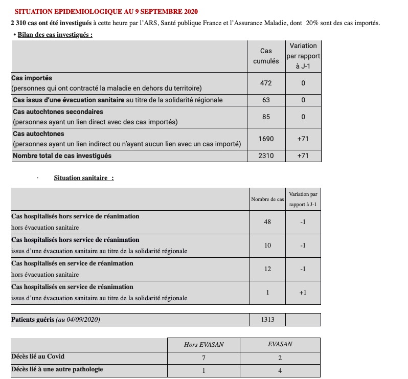 2.310 cas ont été investigués à cette heure par l’ARS, Santé publique France et l’Assurance Maladie, dont 20% sont des cas importés. Ce qui veut dire que 4 cas sur 5 sont des cas autochtones.