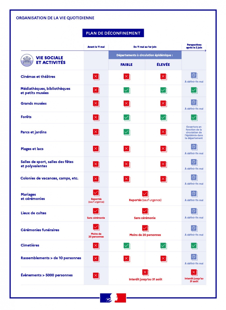 - les cimetièresCeux en rouge, au contraire, devront attendre au moins jusqu'au 2 juin.