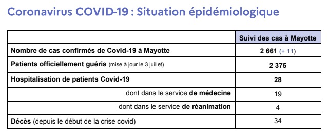 L'ARS de Mayotte annonce 11 nouveaux cas de Covid-19, ces dernières 24 heures. Le nombre total de cas positifs s'élève désormais à 2.661 personnes. En tout, 28 personnes sont hospitalisées dont 4 en réanimation. L'île aux parfums déplore toujours 34 décès depuis le début de l'épidémie. Deux Mahorais sont décédés à La Réunion suite à des évacuations sanitaires. (Photo d'illustration rb/www.ipreunion.com)