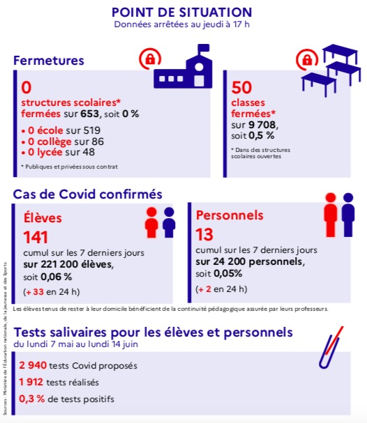 Cette semaine, 141 élèves et 13 élèves ont été testés positifs au Covid-19. 50 classes sont fermées, et tous les établissements de l'île sont ouverts. 2 1.912 tests salivaires ont été réalisés, pour 0,3 % de tests positifs (Photo d'illustration rb/www.ipreunion.com)