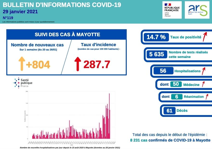 "Face à la dégradation de la situation sanitaire, décision a été prise de confiner depuis, hier soir, les communes de Pamandzi, Dzaoudzi-Labattoir et Bouéni où les taux d’incidence sont particulièrement élevés, et ce pour une période indéterminée. Ces mesures doivent permettre de freiner la diffusion des variants du Covid-19 sur le territoire et d’éviter une saturation hospitalière afin que tous les patients dont l’état de santé l’exige puissent être accueillis