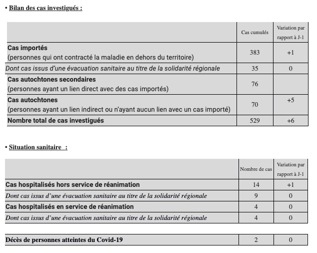 Si la préfecture affirme qu'aucun lien n'est identifié entre les nouveaux cas confirmés ce jour, cette donnée reste à surveiller à l'aune de la prochaine levée des restictions de vol et des mesures de quarantaine obligatoire.