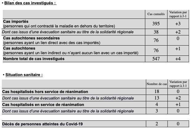 - un cas est importé dans le cadre d’une évacuation sanitaire au titre de la solidarité régionale,