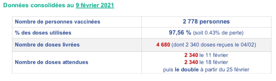 A noter que la campagne de vaccination n’a débuté que le 25 janvier à Mayotte, avec près d’un mois de retard sur la métropole, faute de possibilité de livraison du super congélateur -80°C, indispensable à la conservation des vaccins Pfizer BioNTech.