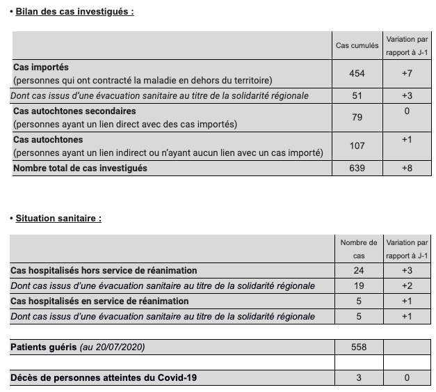 La préfecture et l'Agence Régionale de Santé confirment 8 nouveaux cas de coronavirus Covid-19 enregistrés à La Réunion ce mardi 21 juillet 2020 à 15h00, soit un total de 639 cas depuis l'apparition du premier cas le 11 mars 2020. Parmi les nouveaux cas annoncés ce jour, 1 est classé autochtone sans lien avec d'autres cas connus, 4 sont classés importés suite à un dépistage réalisé 7 jours après leur arrivée et 3 sont issus d'une évacuation sanitaire. Nous publions le communiqué ci-dessous. (Photo rb/www.ipreunion.com)