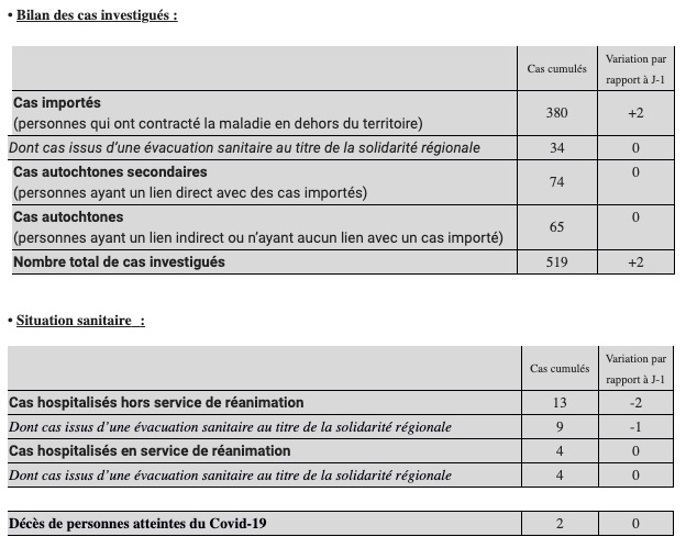 519 cas ont été investigués à cette heure par l’ARS, Santé publique France et l’Assurance Maladie, dont 73% sont des cas importés. 7 cas sont en cours d’investigation.