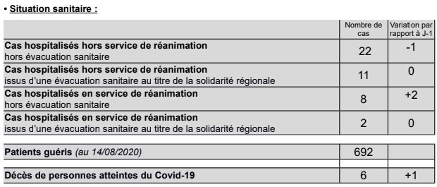 30 personnes hospitalisées, dont 8 en réa, hors évacuations sanitaires. Au-delà du nombre de cas du jour, ce sont les hospitalisations qui pourraient inquiéter. Espérons que la semaine qui vient nous annoncera de meilleures nouvelles