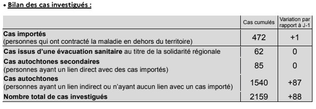 2159 cas ont été investigués à cette heure par l’ARS, Santé publique France et l’Assurance Maladie, dont 22% sont des cas importés.