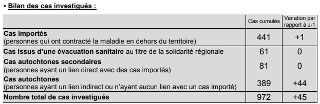 972 cas ont été investigués à cette heure par l’ARS, Santé publique France et l’Assurance Maladie, dont 45% sont des cas importés.