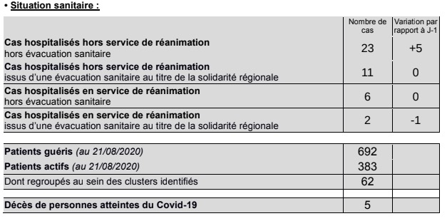 Troisième jour consécutif de nombre record de nouveaux cas de coronavirus à La Réunion. La préfecture et l'Agence Régionale de Santé confirment 79 nouveaux cas de Covid-19 enregistrés ce 21 août 2020 à 15h00. Au total 1.075 cas ont été diagnostiqués sur le territoire depuis l'apparition du premier cas le 11 mars 2020, dont 61 évacuations sanitaires ont par ailleurs été faites au titre de la solidarité régionale depuis cette date. Ce jour, 2 nouveaux clusters ont été identifiés à Saint-Denis. Parmi les nouveaux cas, 1 cas est importé, 10 cas sont autochtones avec ou sans lien avec des cas connus, 68 cas sont en cours d'investigation. Sur la semaine écoulée, sur les 307 cas enregistrés, 46 cas étaient regroupés au sein des clusters déjà identifiés. Nous publions le communiqué ci-dessous. (Photo rb/www.ipreunion.com)