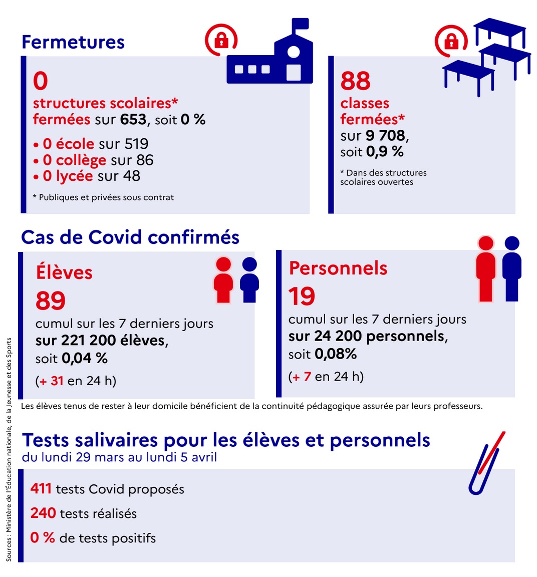 Le rectorat informe dans son bilan hebdomadaire que selon les données Covid arrêtées au jeudi 8 avril 2021, 88 classes sont actuellement fermées. Le bilan est de 89 élèves et 19 personnels positifs dans les établissements scolaires de La Réunion. Aucune structure scolaire n'est fermée. (Photo d'illustration rb/www.ipreunion.com)