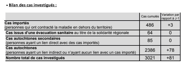 3021 cas ont été investigués à cette heure par l’ARS, Santé publique France et l’Assurance Maladie, dont 16% sont des cas importés.