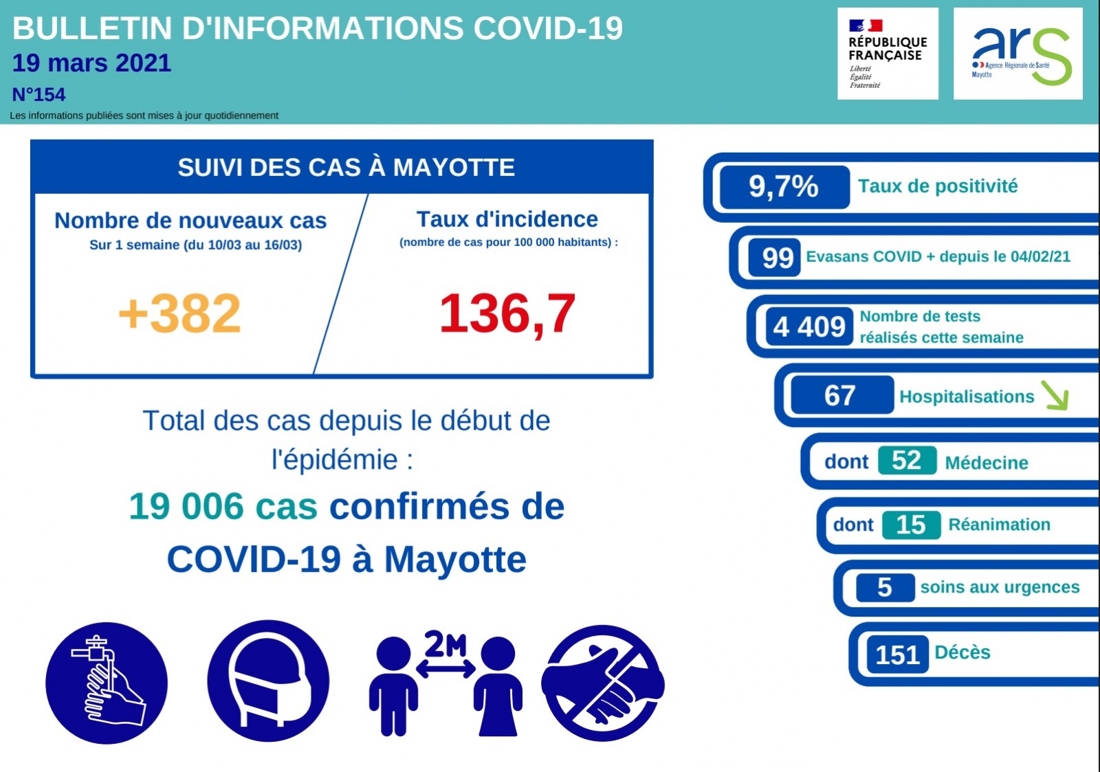 L'ARS de Mayotte prévient : "le variant sud-africain est bien plus contagieux que le virus présent depuis mars dernier. Il est probablement aussi plus dangereux. Dans un souci de protection des personnes les plus vulnérables, il est donc demandé à chacun de respecter les gestes qui sauvent (lavage des mains à l'eau et au savon, distanciation physique et port du masque)".
