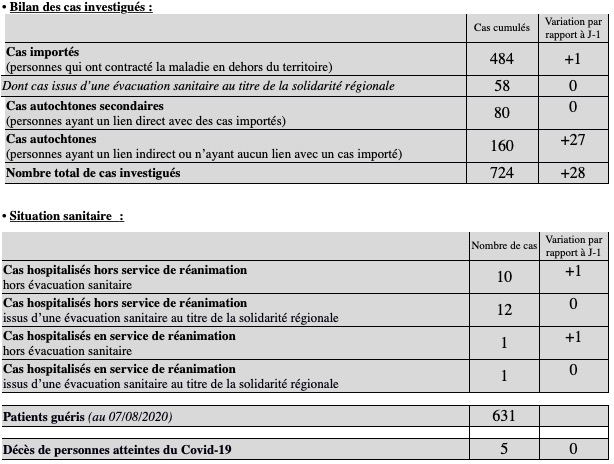 En complément, les autorités rappellent qu’il est fortement préconisé aux voyageurs en provenance de métropole de respecter le principe de septaine. A l’issu d’un test réalisé 7 jours après leur arrivée, les voyageurs en provenance de métropole peuvent rompre cet isolement à domicile. Le port du masque est vivement conseillé et obligatoire dans les espaces publics.