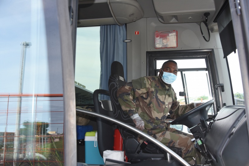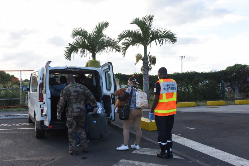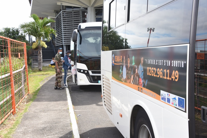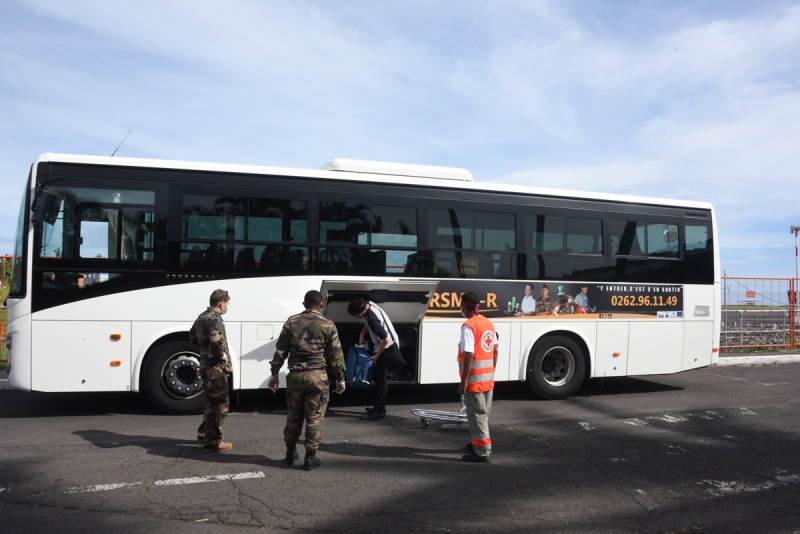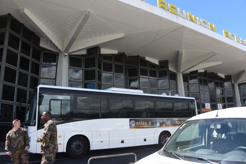 Dans le cadre de l'opération Résilience, lancée le 25 mars 2020 par le président de la République, les forces armées dans la zone sud de l'océan Indien (FAZSOI) apportent leur soutien aux services de l'Etat. Sur demande de concours du Préfet de La Réunion, le groupement de soutien de la base de défense (GSBdD) de La Réunion - Mayotte et le régiment du service militaire adapté (RSMA) de La Réunion ont mis à disposition à partir du 28 mars 2020 des véhicules (bus et véhicules légers) et leurs chauffeurs afin d'assurer le transport des voyageurs de l'aéroport Gillot vers les centres de confinement réquisitionnés par la Préfecture.