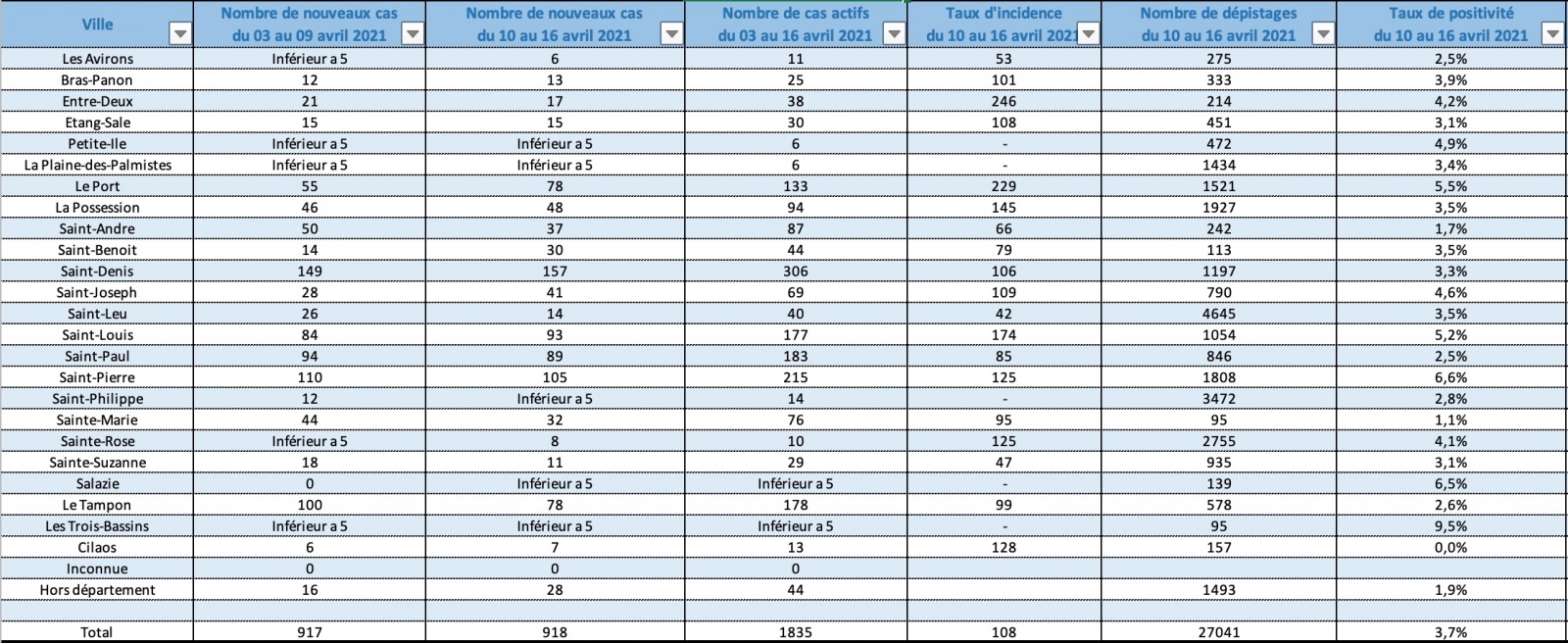 "bien que la ville compte moins d'habitants."le taux d'incidence est le nombre de cas par rapport a la taille de la population.un taux d'incidence a l'Entre-Deux supérieur a celui au Port ne veut pas dire qu'il y a plus de cas, et c'est bien ce qu'indique le tableau.