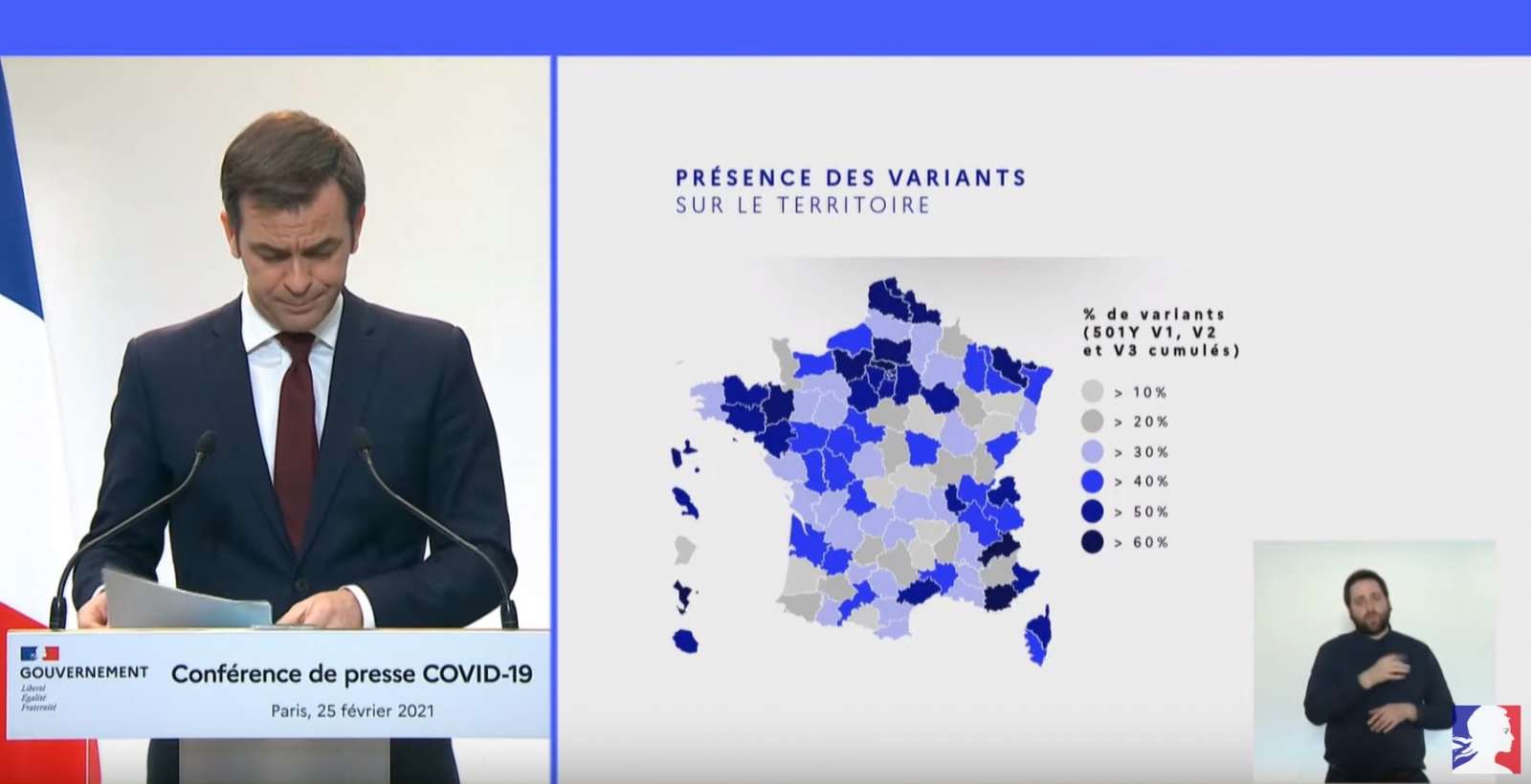Une carte décontextualisée peut donner lieu à un vent de panique. Ce vendredi 26 février, au lendemain de la conférence de presse du gouvernement sur la situation sanitaire, une capture d'écran circule sur les réseaux : on y voit la diffusion des variants en France, et La Réunion fait partie des départements sur lesquels le variant est présent à plus de 50%.