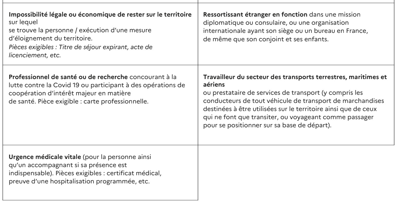 La liste des motifs impérieux des payés " rouge écarlate est la suivante :