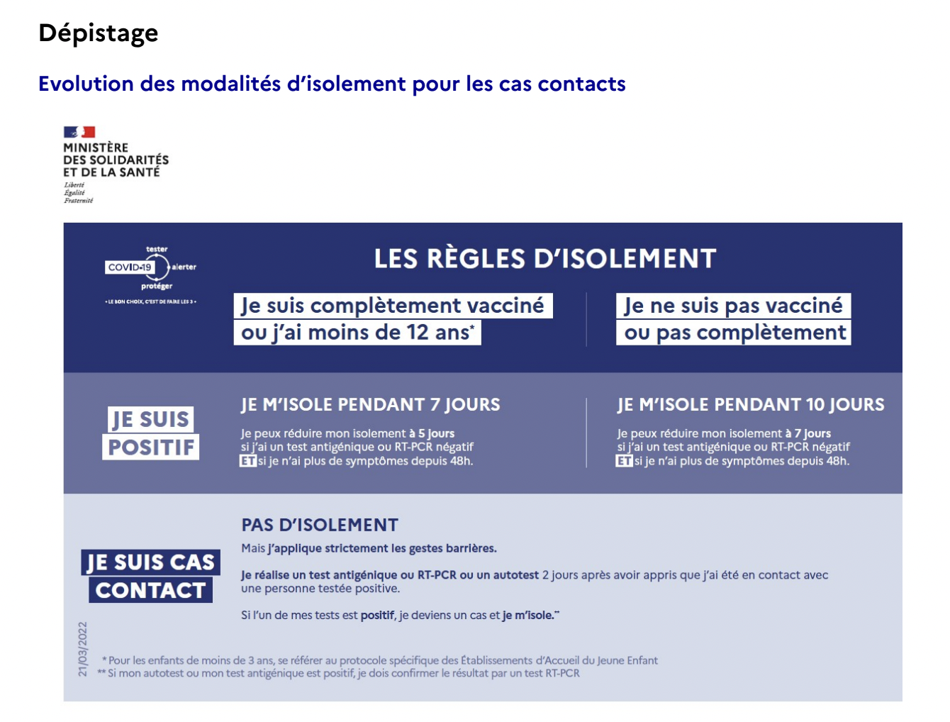 Selon les autorités sanitaires 33.554 tests ont été réalisés sur la période, soit une baisse de plus de 11 % par rapport à la semaine précédente. Les modalités d'isolement changent pour les cas contacts.