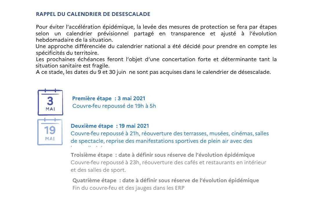 "La Réunion s'engagera dans la 2eme étape du plan de désescalade avec une très grande prudence et un sentiment de responsabilité. La suite, nous ne pourrons l'envisager que si l'ensemble des indicateurs s'orientent enfin à la baisse et que la couverture vaccinale augmente de manière importante. La date du 9 juin, comme troisième étape de notre plan de désescalade, est loin d'être acquise aujourd'hui : c'est ensemble qu'il va falloir la gagner" presse le préfet.