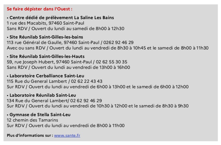 Au vu du contact-tracing mené, ces différentes contaminations ne sont pas en lien les unes avec les autres. Ce qui indique une circulation diffuse du variant Delta dans les hauts de l’Ouest. Les habitants des hauts de l’Ouest sont donc invités à se faire dépister pour identifier au plus tôt les chaînes de contamination.