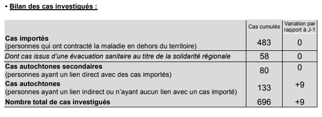 696 cas ont été investigués à cette heure par l’ARS, Santé publique France et l’Assurance Maladie, dont 70% sont des cas importés.