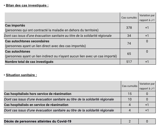 517 cas ont été investigués à cette heure par l’ARS, Santé publique France et l’Assurance Maladie, dont 73% sont des cas importés.