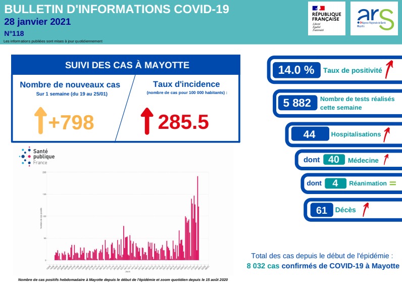 Un nouveau décès est à déplorer à Mayotte, des suites de la Covid-19, portant à 61 le total de décès liés au virus depuis le début de l'épidémie, dont 5 à La Réunion après évacuations sanitaires, rappelle l'ARS de Mayotte. Il s'agit d'une personne âgée de 59 ans, décédée à domicile. Celle-ci présentait des comorbidités. L'épidémie continue de progresser sur l'île aux parfums, où 798 cas sont enregistrés sur une semaine seulement. (Photo d'illustration rb/www.ipreunion.com)