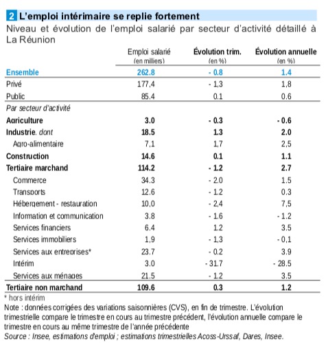Après quatre trimestres consécutifs de hausse, l’emploi salarié du secteur privé chute (- 1,3 %, soit -2 400 emplois). Bien qu’historique, cette baisse est deux fois moins forte qu’au niveau national (- 2,5 %).