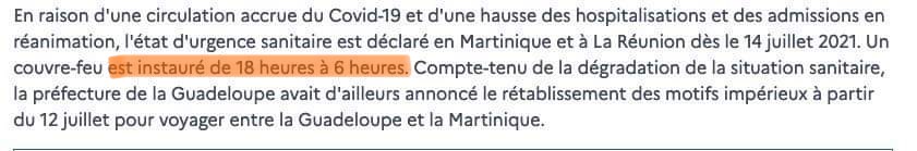 Le site cite par ailleurs la Martinique, on aurait donc pu penser qu'une simple erreur s'était glissée dans leurs informations. Sauf que dans cette île des Antilles, le couvre-feu ne débute pas non plus à 18 heures, mais à 21 heures. Dommage.
