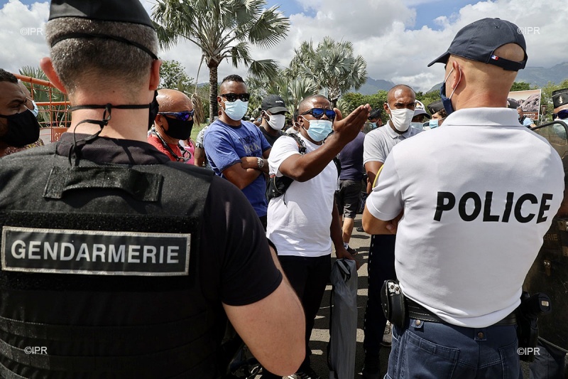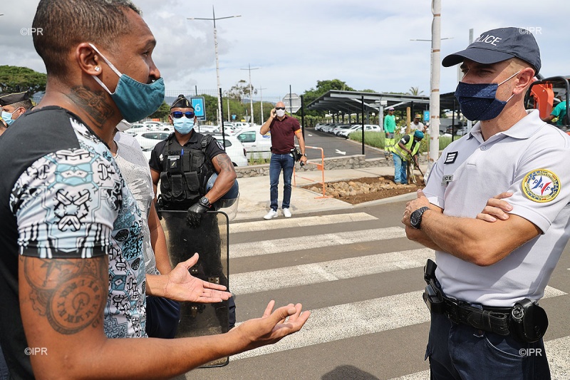 Les forces de l'ordre sont arrivées dans la matinée pour encadrer le rassemblement, aussi bien pour fluidifier la circulation au rond-point de Gillot, mais aussi pour canaliser les manifestants. Des échanges ont eu lieu sans animosité entre les personnes rassemblées et les policiers.
