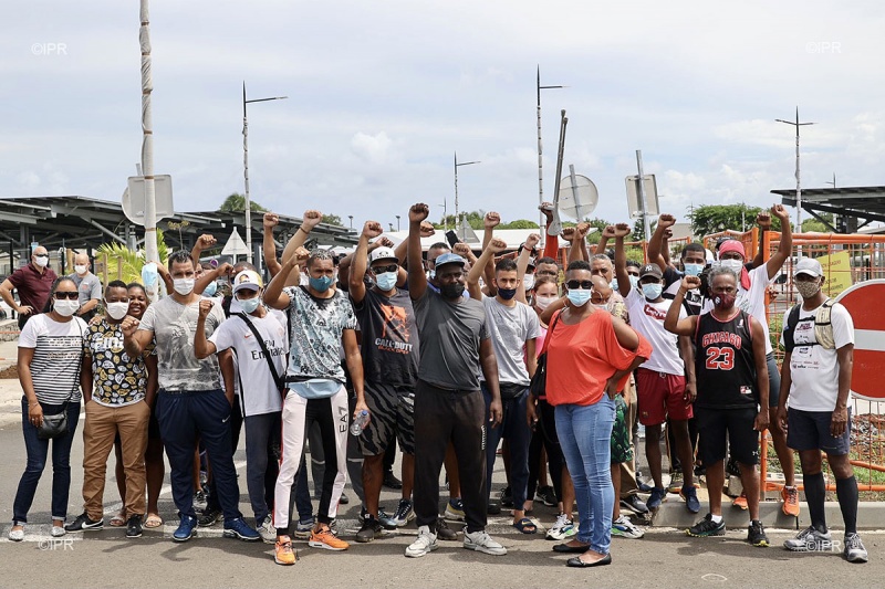 Une manifestation s'est déclarée ce lundi 15 février 2021 au matin au rond-point de Gillot à Saint-Denis. Plusieurs dizaines de personnes se sont rassemblées pour réclamer la fermeture de l'aéroport face au rebond épidémique du coronavirus sur l'île. Les manifestants demandent une fermeture pendant 15 jours au moins, ils demandent aussi un contrôle strict des septaines des voyageurs arrivant en ce moment sous motif impérieux. Les forces de l'ordre sont sur place pour encadrer la manifestation. (Photos rb/www.ipreunion.com)