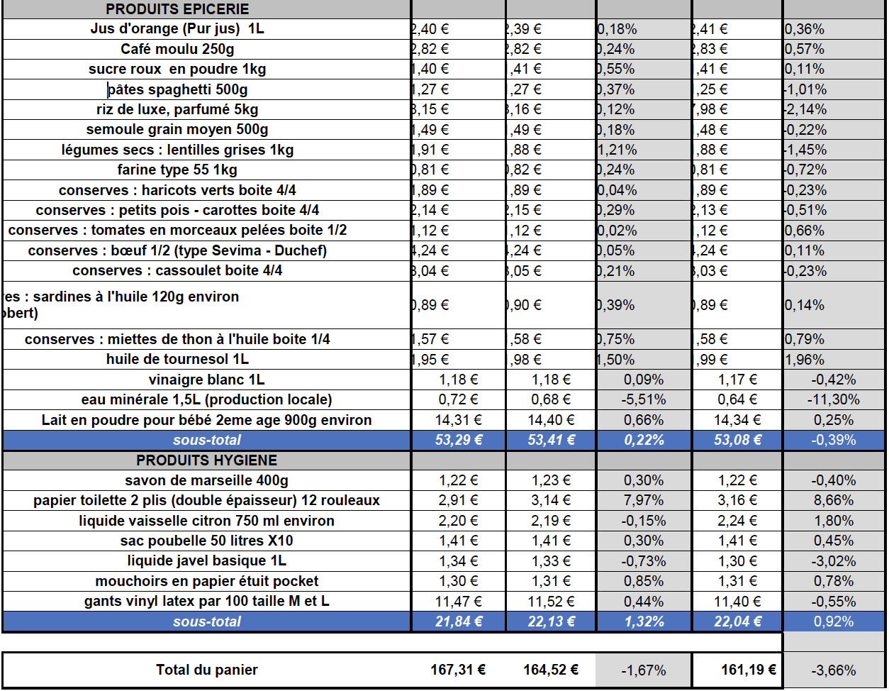 Le prix de ce panier a donc baissé de 3,5% depuis le début de la crise.
