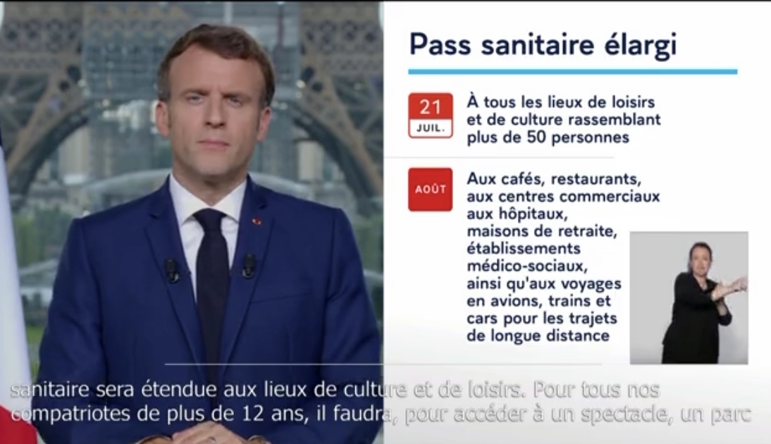 La règle concernant le PASS ' SANITAIRE doit toutefois être votée, dans un projet de loi qui sera soumis au Parlement, réuni "en session extraordinaire à partir du 21 juillet"A suivre donc ..............